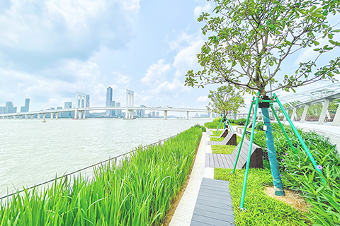 沿線以多層次植物配搭 市民可自駕單車享景觀 南岸綠廊二期二區開放使用